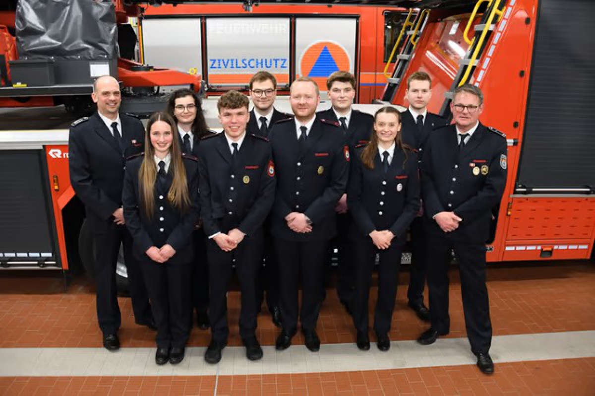Daniel Kammertöns beförderte Hendrik Hüsing und Iliyan Semke zum Feuerwehrmann, Oberfeuerwehrmann wurden Tim Eschengerd, Marlon Kleinegrauthoff, Andreas Kotz und zum Hauptfeuerwehrmann Philipp Steinbeck ernannt.