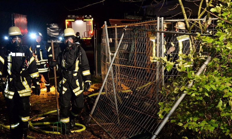 schnell einen Wohnwagen, der in unmittelbarer Nähe der Gartenhütte stand, aus dem Gefahrenbereich schieben.Etwa 90 Minuten nach dem Alarm waren die Flammen gelöscht, so dass die Feuerwehrleute wieder einrücken konnten. Verletzt wurde durch den Brand niemand, die Ermittlungen zur Brandursache dauern nach Polizeiangaben an.