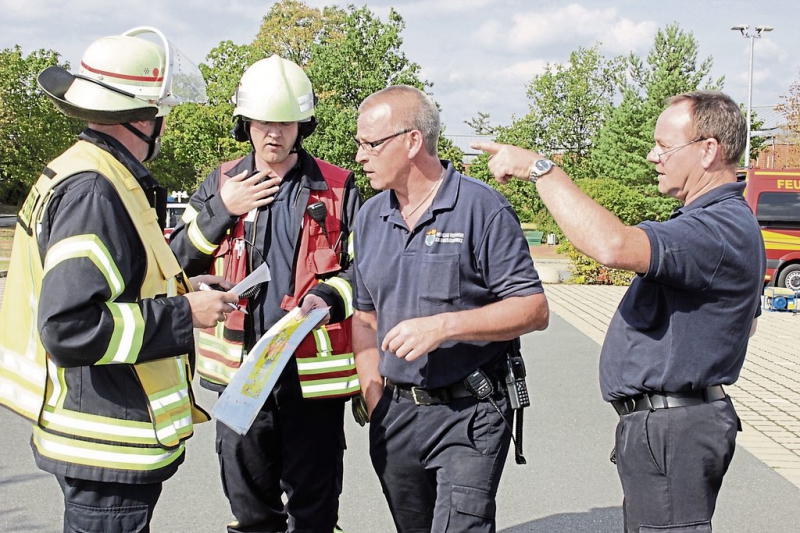 Aufgebaut ist am Einsatzort ein WLAN-Netz, so dass mehrere Kollegen an ihren Arbeitsplätzen auf dem einen Programm arbeiten. »Ich kann so Einsatzabschnitte bilden. Und ich könnte das Bild auch dem Bürgermeister ins Rathaus auf die Großbildleinwand bringen«, sagt Potthoff. Während der Übung erproben neben Potthoff Martin Fockel, Wigbert Fockel, Thorsten Hano, Henrik Otto, Lothar Dreier und Alexander Balsliemke das Programm. »Wir können die Lage Bild für Bild nachvollziehen und zeigen, wie sich die Situation entwickelt hat.« Das sei unschätzbar für den Einsatz an sich, aber auch für die Manöverkritik in der Nachbearbeitung.