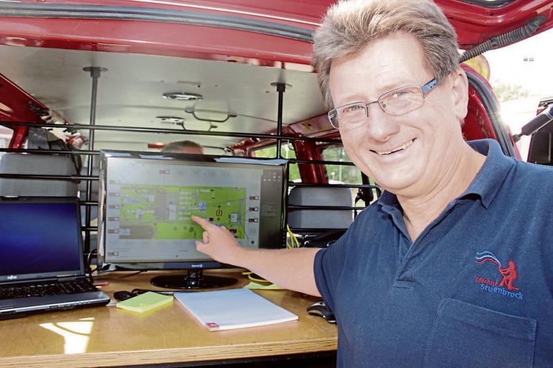 die Einsatzleitwagen untereinander verknüpfen, aber auch die beiden Feuerwehrgerätehäuser. Das könnte bei so genannten Großlagen wichtig werden – wie Sturm oder Hochwasser.Fireboard-Fachmann ist Ulrich Potthoff. Er zeigt auf dem Computerbildschirm einen Lageplan des Einsatzgebietes und wer wo was macht. Das wird digital protokolliert, grafisch dargestellt und dokumentiert. So lässt sich für jede Minute nachvollziehen, was im Einsatz getan wurde. »Damit haben wir den Überblick über die komplette Situation«, erklärt Potthoff. Auch alle Funksprüche, Anweisungen und Lageberichte werden protokolliert.