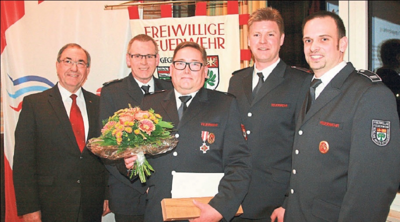 Feuerwehrleistungsabzeichen (fünfte erfolgreiche Teilnahme) und Gold mit grünem Grund für die 20. erfolgreiche Teilnahme am Leistungsnachweis ging an