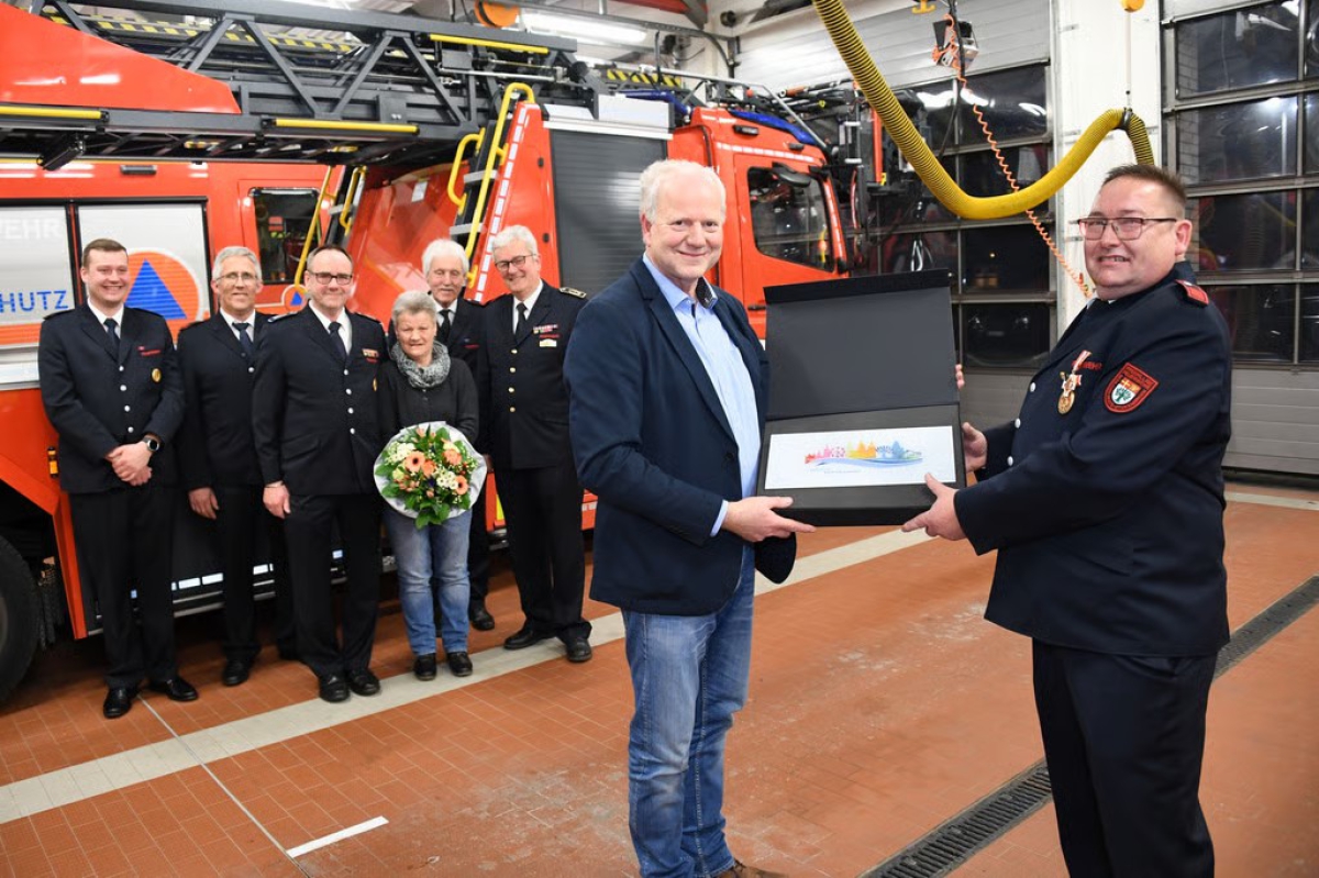 Peter Nementz wurde für sein 35-Jähriges Engagement mit dem Feuerwehr-Ehrenzeichen des Landes NRW in Gold geehrt – überreicht von Bürgermeister Olaf Junker. Für sein zehnjähriges Engagement wurde Levin Diehn vom Verband der Feuerwehren NRW geehrt, er wurde 2015 Anwärter und vergangenes Jahr Gruppenführer (Brandmeister). Urkunden vom Verband erhielten ferner Ulrich Potthoff und der ehemalige Stadtbrandinspektor Bruno Wulf für 40 Jahre Feuerwehrdienst sowie Ferdinand Sander für 50 Jahre.